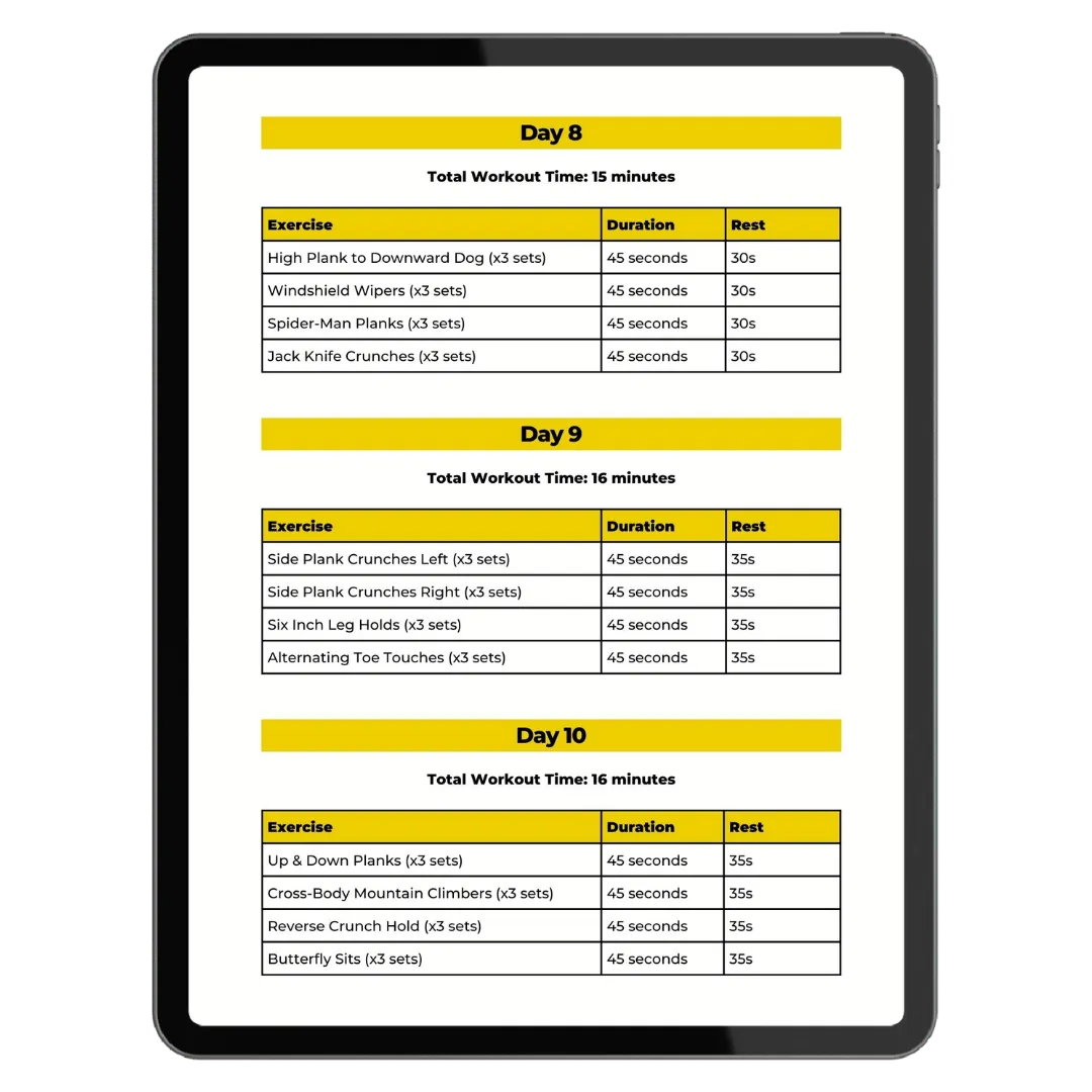 A comprehensive video library featuring 30+ core-focused exercises with step-by-step instructions. These advanced techniques are designed to maximize muscle engagement, based on research from leading performance labs.